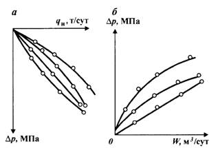 q„ — дебит скважин по нефти; W — приемистость скважин; Др — депрессия (репрессия) на забое скважины