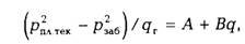 Коэффициент А численно равен значению (P2пл.тек – Р2заб)/ qг в точке пересечения индикаторной линии с осью ординат. Дробь в правой части уравнения соответствует 1/А, т.е. ![]()