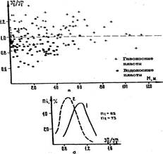 Н - расстояние пласта от ГВК, 1, 2 - соответственно газо- и водонасыщенные пласты.