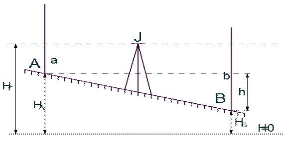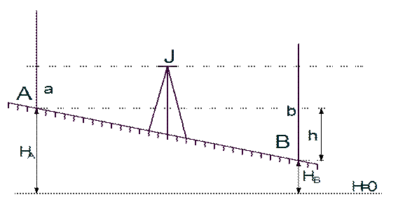h = a – b = 1,454 – 2,878 = -1,424 м - превышение точки В над точкой А