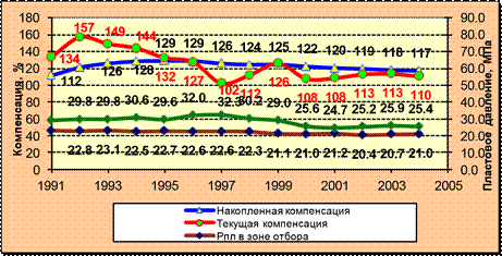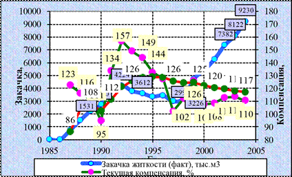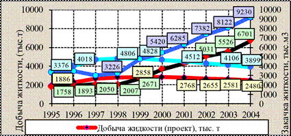 - накопленная добыча жидкости – 561178 тыс.т; - накопленная закачка воды – 734334 тыс.м3 .