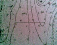 Если точка находится на горизонтали, то ее отметка (высота) равна отметки горизонтали. Если точка расположена между горизонталями с разными высотами, то ее отметка может быть определена путем интерполирования на глаз или более точно путем измерения расстояния (заложения) между горизонталями и расстоянием между горизонталью с меньшей отметкой и данной точкой.![]()