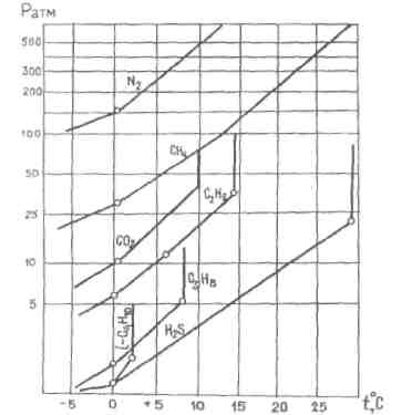 Каждый отдельный компонент имеет определенную критическую температуру, выше которой гидраты данного компонента не образуются. Такая температура определяется точкой пересечения равновесной кривой гидратообразования с кривой упругости паров данного компонента. Метан и азот, а также инертные газы не имеют критической температуры гидратообразования, так как линия упругости их паров заканчивается в критической точке газа до соприкосновения с кривой упругости паров гидрата.