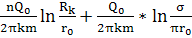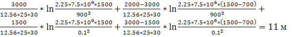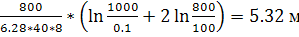 Радиус контура питания Rк =2d2 =2*500=1000 м .