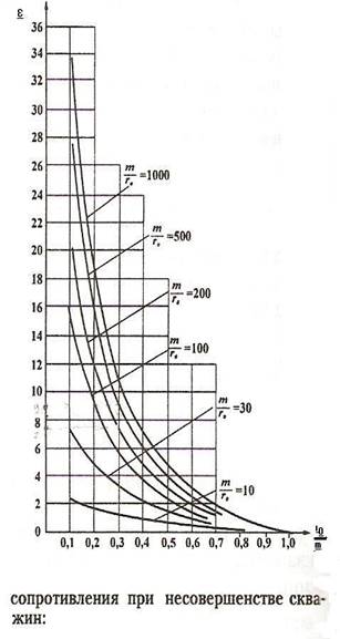 Величину сопротивления, учитывающего несовершенство скважин, определяем по графику: