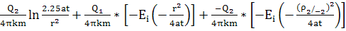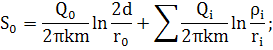 Для t=100 сут учитывается влияние всех скважин при этом режим во всех скважинах квазистационарный , тогда:
