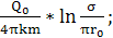 Для t=3 сут, согласно таблице 1, учитывается влияние скважины 1 и скважины 2/ , но режим неустановившийся. С учетом того что имеем расчетную схему в виде реки (Н=const), то отображенная скважина задается как нагнетательная (-Q0 ),тогда: