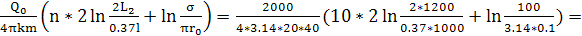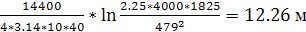 Отметим, что полученное решение будет справедливо для периода эксплуатации водозабора, превышающего время наступления стационарного режима, т.е. tпрог >3600 сут. Предварительно схематизируем пласт как неограниченный, принимая Rk = 2L, тогда Rотобр =0.