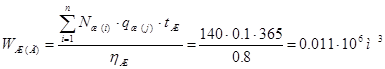 Используя полученные данные, выполняем расчёт годовых объёмов водопотребления и водоотведения.