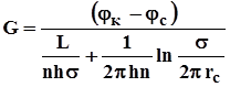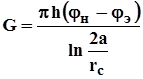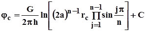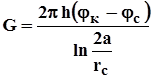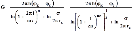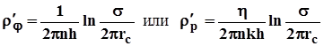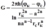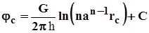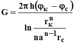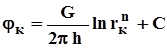 Формула (4.25) справедлива при любом целом n. В частности, при n=1 имеем выражение типа формулы Дюпюи для определения дебита при плоскорадиальном потоке: