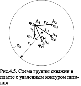 2.1.2 Приток к группе скважин с удаленным контуром питания