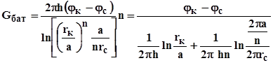 Определим дебит батареи умножив формулу (4.25) на число скважин в батареи n