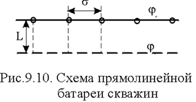 2.1.6.2 Приток к прямолинейной батареи скважин