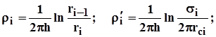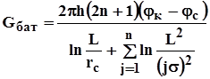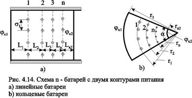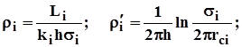 где Li - расстояние между батареями (для i=1 - L1=Lк1 ); ri - радиусы батарей (для i=1 - r0=rк ); ki - число скважин в батареи.