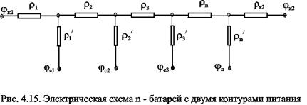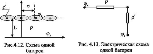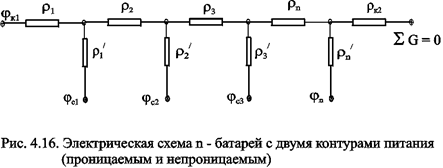 Электрическая схема в случае одной батареи (рис.4.12) имеет вид (рис.4.13). На рис.4.12 затемнены области внутреннего сопротивления.