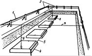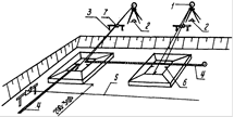 Инвентарные металлические обноски (рис.1, б) состоят из двухметровых стоек и металлических труб, которые рассчитаны на многократное использование. Устанавливается металлическая обноска аналогично деревянной.