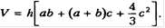 где hab - объем котлована без учета откосов; h(a+b) - объем котлована над откосами без учета углов; с - горизонтальная проекция откосов; 4h/3*c2 - объем котлована над откосами в углах. Для удобства подсчета эту формулу можно привести к следующему виду: