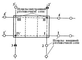 Рис. 2. Схема размещения внутренней и внешней разбивочных сетей