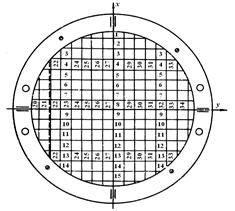 Прибор PZL выставляют над пунктом внутренней разбивочной сети на исходном монтажном горизонте, центрируют и нивелируют по уровню подобно теодолиту. Визирование производят через специальные отверстия в перекрытиях (рис. 8). На возводимом монтажном горизонте сооружения над проемом укрепляют в специальной раме координатную палетку из оргстекла (рис. 9).