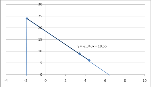 9. Выполним определение параметров методом площадного прослеживания. Для этого построим график S- Inr по замерам уровней в наблюдательных скважинах на момент t= 10 часов (0.42сут), т.е в период когда во всей исследуемой области фильтрации установился квазистационарный режим.