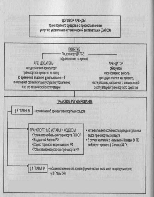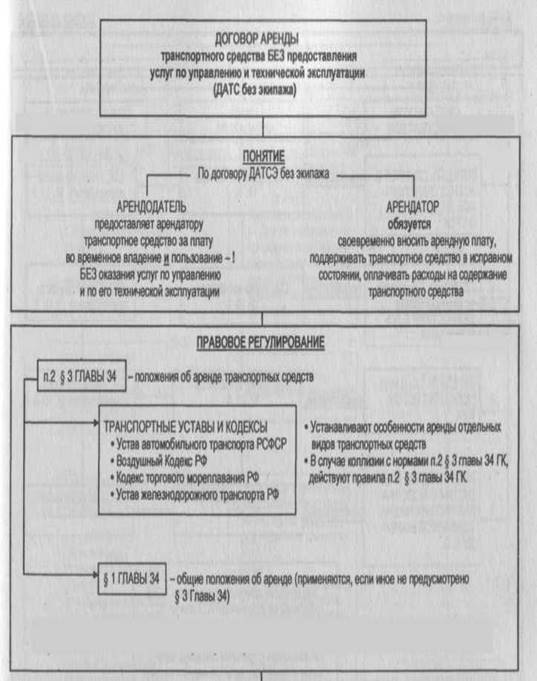е)изучение прав и обязанностей сторон в договоре аренды транспортных средств с экипажем и в договоре аренды транспортных средств без экипажа, их сравнительная характеристика;