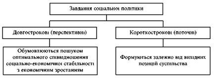Завдання соціальної політики країни поділяються на довгострокові та короткострокові (рис.1.1).
