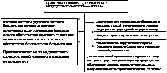 Принудительное лечение применяется в целях: ограждения общества от повторных действий лица, страдающего психическим расстройством, обеспечения безопасности самих этих лиц, их излечение от психического заболевания и приспособление их к условиям общественной жизни.