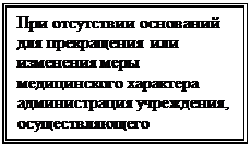 Такая же процедура предусматривается в случае улучшения психического состояния субъекта: на основании медицинского заключения суд принимает решение об изменении принудительной меры медицинского характера на такую, которая отвечает по режиму содержания психическому состоянию лица».[18]