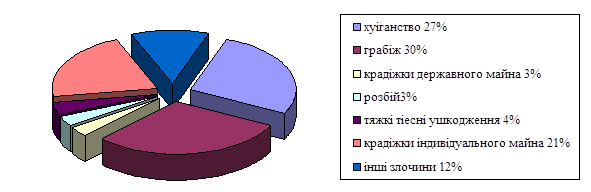 | Розбійні напади | 350 | 80,3 | 316 | 86,1 |