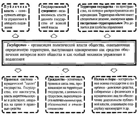 Государство — это единая политическая организация общества, которая распространяет свою власть на всю территорию страны и ее население, располагает для этого специальным аппаратом управления, издает обязательные для всех веления и обладает суверенитетом.