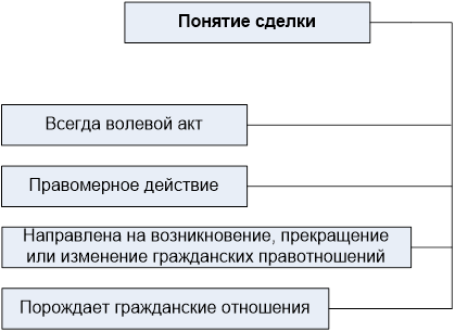 г) сделка порождает гражданские отношения, поскольку именно гражданским законом определяются те правовые последствия, которые наступают в результате совершения сделок.