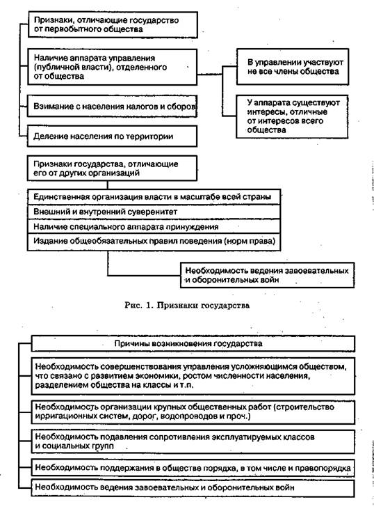 1. Государство — единственная организация власти в масштабе всей страны. Ни одна другая организация (политическая, общественная и т.п.) не охватывает всего населения. Каждый человек уже в силу своего рождения устанавливает определенную связь с государством, становясь его гражданином или подданным, и обретает, с одной стороны, обязанность подчиняться государственно-властным велениям, а с другой — право на покровительство и защиту государства.
