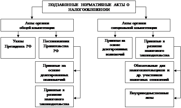 Налоговый кодекс Российской Федерации не включает подзаконные нормативные акты в состав законодательства о налогах и сборах, отводит им исключительно подчиненную роль (схема 1).