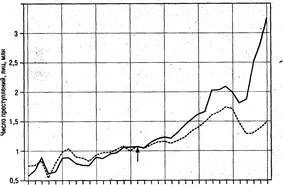 Так, если за основу группировки всей массы зарегистрированных преступлений против собственности взять такой признак, как способ хищения, имеющий важное квалифицирующее значение, то обнаруживается, что за 2002 г. в России зарегистрировано 926,8 тыс. краж (ст. 158 УК), что значительно меньше, чем за каждый из семи предшествующих лет (в 2003 г. краж было зарегистрировано 1150,8 тыс.). Но как свидетельствует та же статистика, людей не только стали чаще обворовывать, но и убивать. В постсоветские годы ежегодное число регистрируемых убийств более чем удвоилось. Если в 1991 г. в России было зарегистрировано 16,1 тыс. убийств (с покушениями), то в 2001 г. уже 33,6 тыс. В последующие два года число зарегистрированных убийств в стране не претерпело значительных изменений.