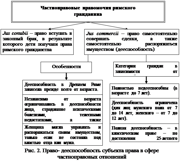 Правоспособность римского гражданина в сфере частноправовых отношений складывалась из двух элементов (см. рис. 2):
