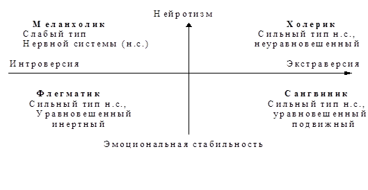 Сочетание интроверсии — экстраверсии с эмоциональными характеристиками определяет темперамент личности (рис. 1.).
