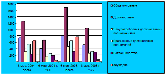 Сведения о состоянии законности в органах дел и результатах работы УСБ (ОСБ) за 6 месяцев 2005 г.