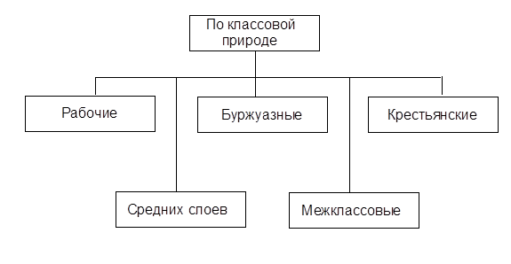 - классовыми, т.е. представлять интересы социальных групп, различающихся по своему месту в структуре производственных отношений;