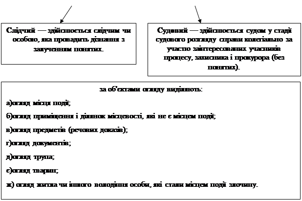 за суб'єктом, стадією та деякими особливостями пов'язаної з цим процесуальної форми проведення умовно можна виділити два види огляду.