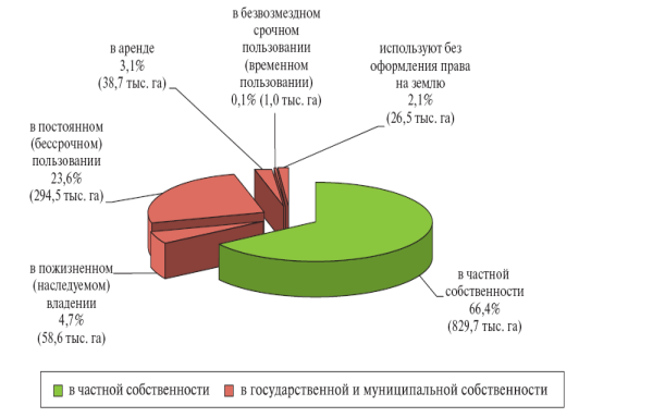 Рисунок Б.1 - Диаграмма использования государственной, муниципальной и частной собственности на землю в личных подсобных хозяйствах