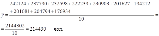 Середній рівень ряду динамікив інтервальних рядах динамік обчислюєтся за середньою арифметичною: