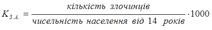 Коефіцієнт злочинної активності є різновидом відносної величини інтенсивності, яка дуже часто використовується в правовій статистиці, і розраховується за такою формулою: