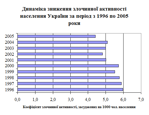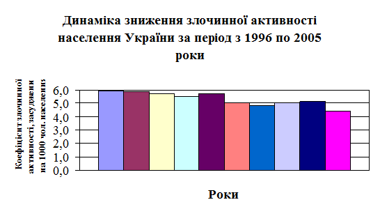 Отже, в середньому кожного року на кожні 1000 чоловік активного населення припадало 5,3 чоловіки засуджених за злочини.