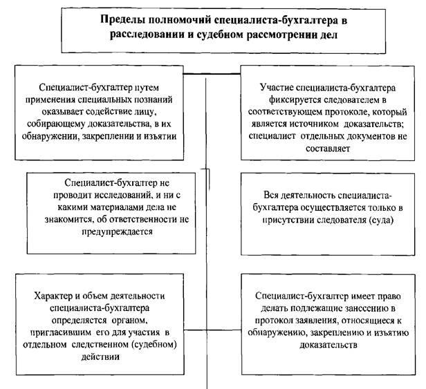 следователем; использование помощи специалиста-бухгалтера в непроцессуальной форме; участие специалиста-бухгалтера в производстве следственных действий (ст.84 УПК РК); проведение документальной ревизии по требованию следователя; производство аудиторской проверки; производство судебно-бухгалтерской экспертизы (ст.245 УПК РК).