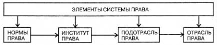 В ином случае система права может складываться и помимо воли законодателя. Итак, система права - это объективно существующее внутреннее строение права, его подразделение на отрасли, подотрасли, институты и нормы. Соответственно элементами системы права выступают (рис.1):