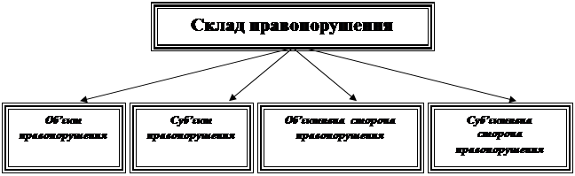 Таким чином, склад правопорушення як основа юридичної відповідальності утворюється поєднанням чотирьох її сторін: