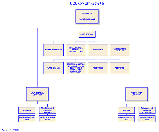 Флот и авиация БО выполняют стоящие перед ними задачи, действуя в основном в прибрежных и территориальных водах вдоль побережья США протяженностью около 96000 морских миль, обеспечивают безопасность судоходства на внутренних водных коммуникациях, составляющих более 25000 морских миль, контролируют обстановку в исключительной экономической зоне страны общей площадью примерно 3,4 млн кв. миль, а также выполняют свойственные им задачи в 361 национальном порту и в случае необходимости в портах других государств, действуя в интересах Соединенных Штатов и их союзников.