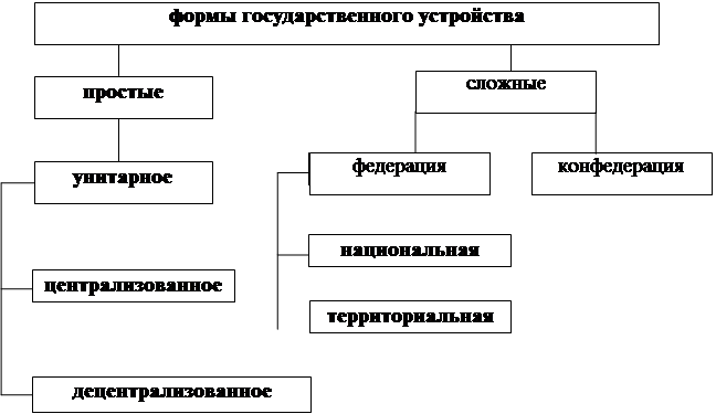 По форме государственного устройства все государства можно подразделить на три основные группы: федеративные, конфедеративные и унитарные (см. схему 1).
