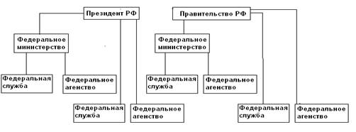 Рис. №1 Схема ведомственного подчинения федеральных министерств, служб и агентств в системе исполнительных органов власти.