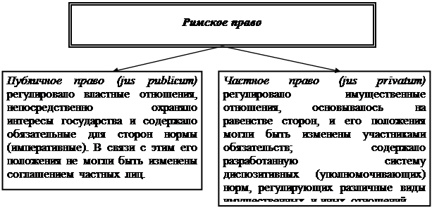 Между частным и публичным правом существовала органическая связь: так как деятельность римских юристов и магистратов протекала в рамках публично-правовых установлений, и в итоге публичное право составляло не только фон, но и основу, на которой строилось и развивалось частное право. В наших же лекциях мы намерены уделить основное внимание римскому частному праву, т.к. в научной литературе по романистике принято считать, что по сравнению с публичным правом частное право представляет собой более ценный массив римского права: оно более развито и до тончайших деталей приспособлено к регулированию отношений, возникающих из форм товаропроизводства и товарооборота, что очень актуально для современной России, пытающейся вписаться в цивилизованную рыночную экономику. Из этого вовсе не следует, что мы будем пренебрегать положениями публичного права – мы будем к нему, так или иначе обращаться на протяжении всего курса. Но, так как основные положения публичного права излагаются в курсе “История государства и права”, а также во избежание дублирования материала, акцентируем наше внимание на вопросах частного права.